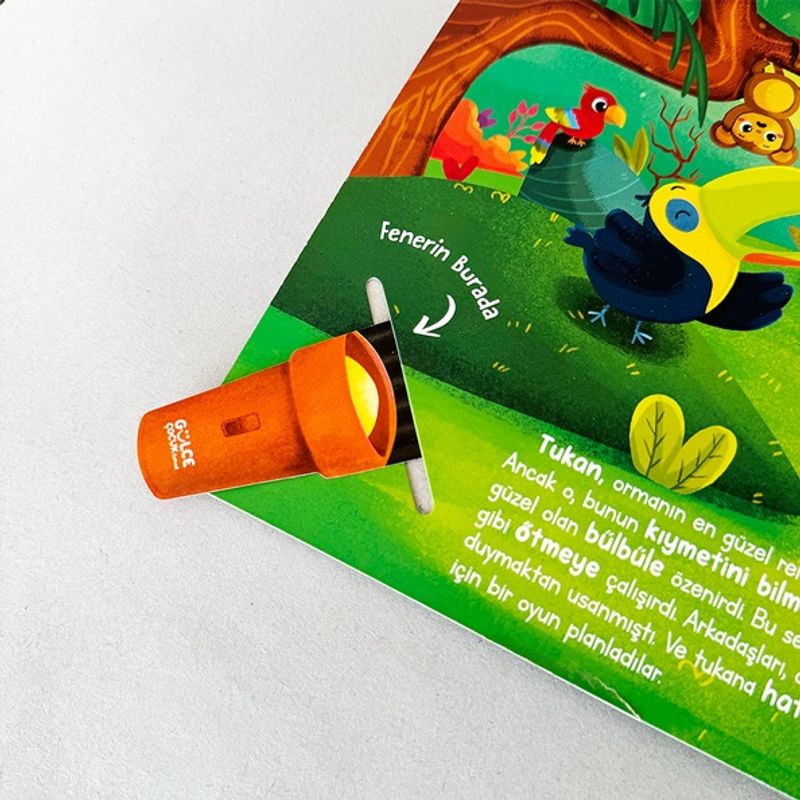 İşte komik hikâyemiz de böylece başlamış. Tukan'a ne mi olmuş; al fenerini eline ve düşelim onun peşine. Bak bakalım fener neler gösteriyor.