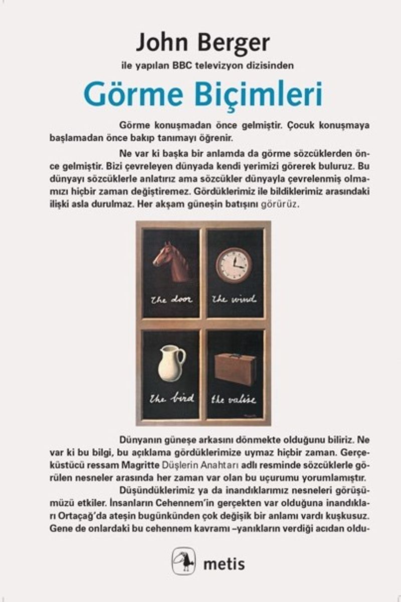 Yayımlandığı 1972'den günümüze, yağlıboya resimden reklamlara, görselliği ve imgeleri anlamanın, eleştirel bir görme biçiminin manifestosu oldu bu güzel kitap. Metis Yayınları'nda da "görme" ile ilgili daha sonraki yayınlarımız için damar oluşturan esinleyici bir etkisi oldu.