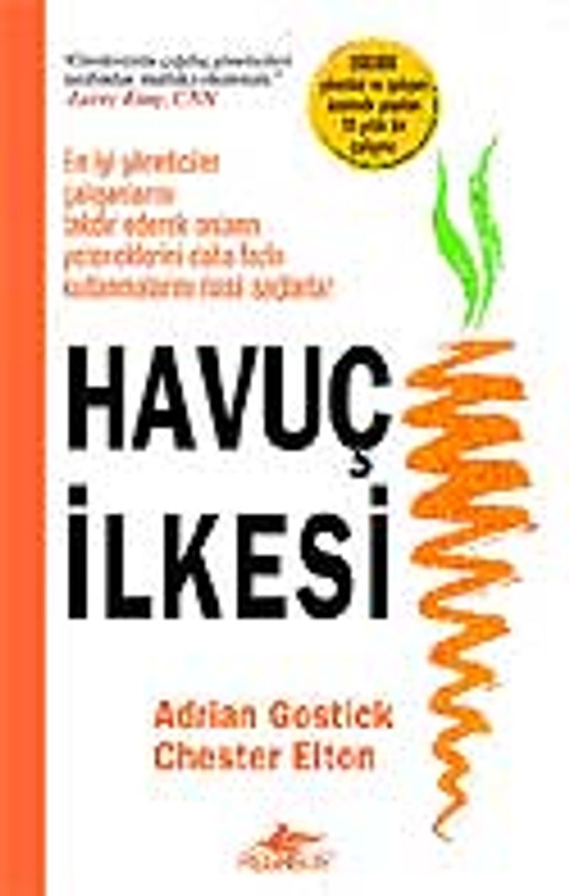 Günümüzün çağdaş yöneticileri tarafından mutlaka okunmalı.”—Larry King, CNNAdrian Gostick ve Chester Elton’ın on yıl boyunca 200.000’den fazla kişinin üzerinde yaptığı araştırmalar kendilerine yapıcı övünç kaynağı ve anlamlı ödüller sağlanan yöneticiler iş verimliliği açısından diğerlerine oranla çok büyük farklılıklar yaratabilmektedir.Disney, DHL, KPMG ve Pepsi Şişleme Grubu dahil olmak üzere çok sayıda lider firmada yapılan çalışmalarda, bestseller yazarları Gostick ve Elton amaç-odaklı takdir edilme üretim sonuçlarında şaşırtıcı artışlar yaratmaktadır. Çalışanlarını havuç ilkesi ile yöneten liderler üretkenlik, sorumluluk alma, süreklilik ve müşteri memnuniyeti konularında çok büyük başarılar elde etmektedir. Gostick ve Elton çalışanların üretkenliğini arttırmanın sanıldığı kadar uzun zaman anlamadığını, hatta bunun anlık bir olay olabildiğini ve bunun için büyük bütçelere gereksinim duyulmadığını göstermektedir. Bu olağandışı kitap size bir Havuç ilkesi yöneticisi olmak için basit adımları atmanızın yolunu göstermektedir. Kitapta gerçek hayattan zengin örnekler sunulmaktadır. Siz, bu basit adımları izleyerek yüksek bir performans sağlayabilir ve ekibinizi başarının yeni bir seviyesine taşıyabilirsiniz.“Havuç İlkesi kitabı size takdir etmenin yalnızca nedenini değil, aynı zamanda nasıl yapılacağını da göstermektedir. Bu kitap yüksek derecede motive olmuş işyerleri yaratmak ve işletmenizi başarıya taşımak için yardımcı olacaktır.”—Harry Paul“Havuç İlkesi tüm dünyadaki CEO’lar, CEO olmak isteyenler, yöneticiler, iş okulları öğrencileri tarafından okunmalıdır. Kitap size bunun nasıl olacağının bir yol haritasını vermektedir.”—Scott O’NeilGünümüz rekabetçi iş alanları içinde yüksek dereceli motivasyonlu insanlara sahip olmak daha fazla önem taşımaktadır. Kitap, okuyuculara bunun gerçekleşmesi için yöntemler sunmaktadır. —Corey A. Griffin