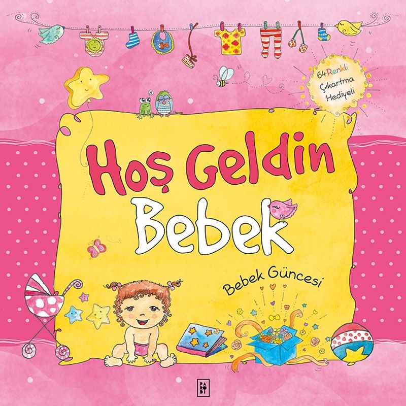 Birbirinden sevimli çıkartmaları kullanarak daha eğlenceli hâle getireceğiniz bu bebek güncesini keyifle doldururken