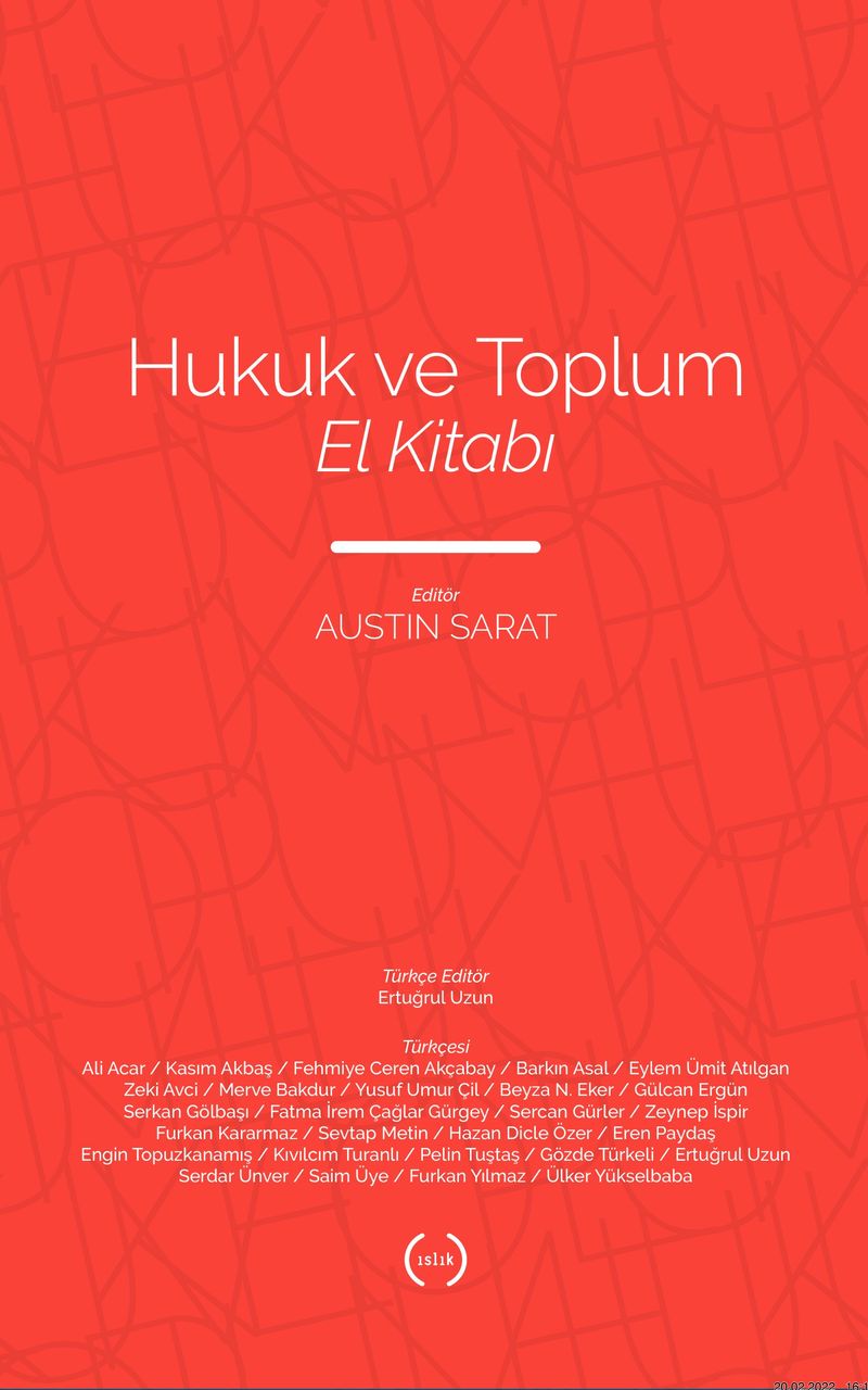Hukuk ve Toplum El Kitabı, İngilizce konuşulan dünyada “hukuk ve toplum”, Kıta’da ise “hukuk sosyolojisi” olarak anılan disiplinin temel tartışma konularını bir araya getiriyor. Bir hukuk ve toplum kanonu oluşturma iddiasındaki kitap, bir kısmı kanona ait yazarların kaleminden çıkan yazılarla alanın İngilizce konuşulan dünyadaki kuruluşundan yirminci yüzyılın sonuna kadar olan süredeki müktesebatını kayda alıyor.