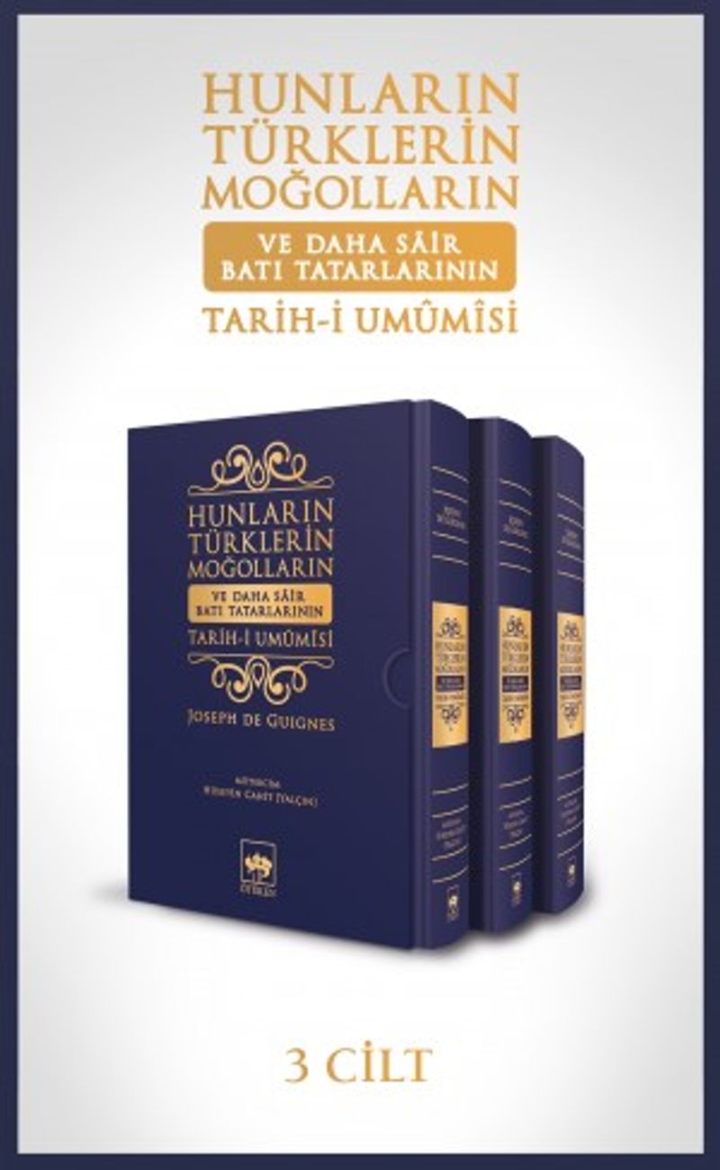 Bu kitap, Hammer Osmanlı Tarihi için ne ifade ediyorsa Genel Türk Tarihi için onu ifade eden klasik bir eser, Türk tarihini en eski çağlarından itibaren bir bütün olarak işleyen ve millî tarihyazıcılığımızı da etkileyen ilk anıtsal çalışmadır. Joseph De Guignes’nin 1756 – 1758 yılları arasında 3 cilt olarak neşrettiği ve özgün adı Histoire générale des Huns, des Mongoles, des Turcs et des autres Tartares occidentaux olan eserin tercümesi, Hüseyin Cahit [Yalçın] tarafından Ziya Gökalp’ın teşvik ve tavsiyesiyle yapılmış ve eser Mükrimin Halil Yınanç’ın tashihiyle 1923-1925 yılları arasında Tanin Matbaası’nda 8 cilt halinde neşredilmiştir. Elinizdeki baskı, bu Osmanlı Türkçesi neşrin Hüseyin Cahit’in dili muhafaza edilmek suretiyle Erol Kılınç tarafından yeni harflere aktarılmasıyla gerçekleştirilmiş ve yayınevimiz tarafından şânına yaraşır bir baskı kalitesiyle Türk kütüphanesine kazandırılmıştır.