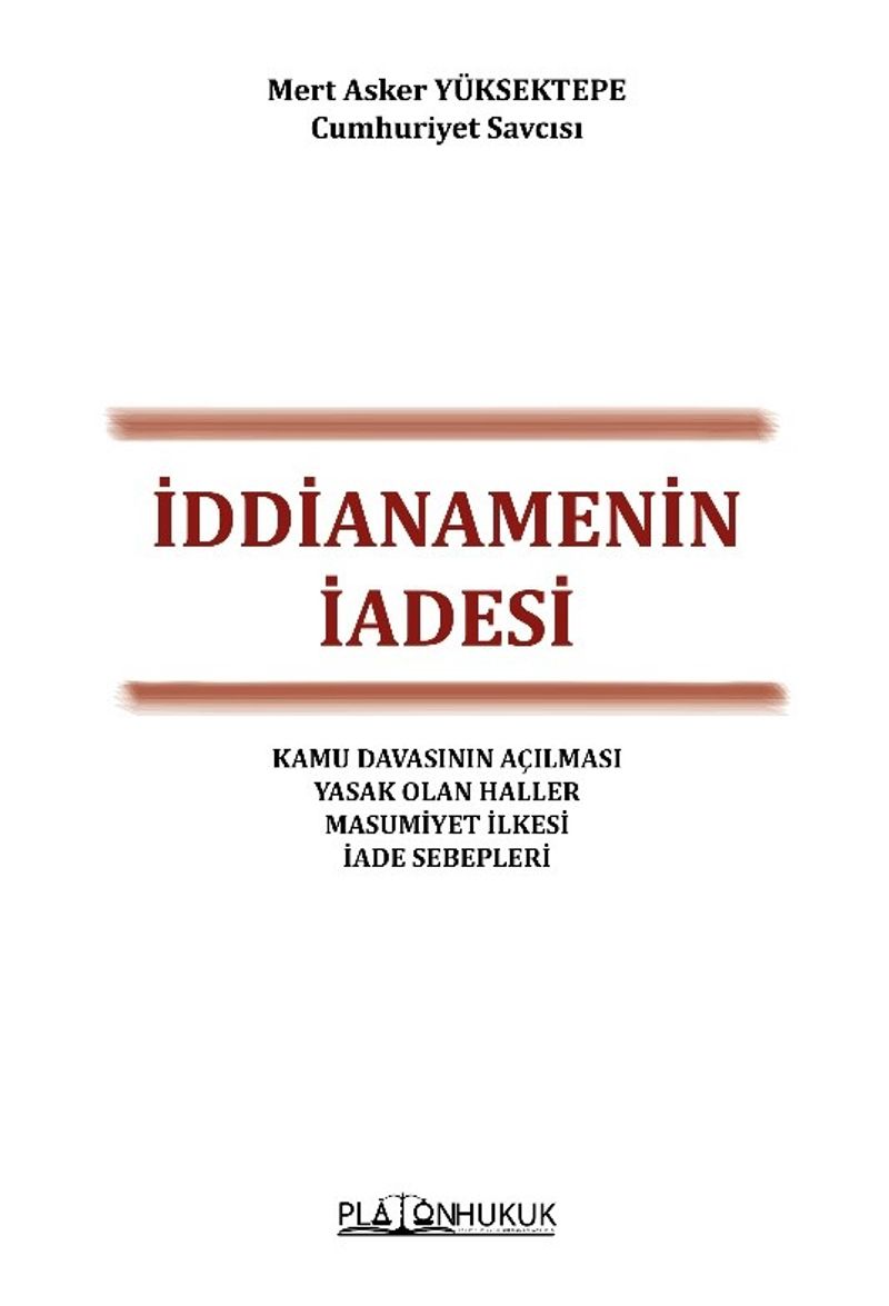 İkinci bölümünde, masumiyet (lekelenmeme hakkı) ilkesi ile iddianame kavramı ve iddianamenin Ceza Muhakemesi Kanunu’nun 170. maddesine aykırı olarak düzenlenmesi (yeterli şüpheye ulaşılmadan iddianame düzenlenmiş olması, görevli ya da yetkili olmayan bir mahkemeye hitaben iddianamenin düzenlenmiş ve sunulmuş olması, iddianamede Ceza Muhakemesi Kanunu’nun 170. maddesinin 3. fıkrası gereğince yer alması gerekli olan hususlara yer verilmemiş olması, iddianamenin sonuç kısmında şüphenin lehine mevcut olan hususların ileri sürülmemesi ve işlenen suç dolayısıyla ilgili kanunda öngörülen ceza ve güvenlik tedbirlerinden hangilerinin hükmedilmesinin istendiğine veya suçun tüzel kişinin faaliyeti çerçevesinde işlenmesi halinde ilgili tüzel kişi hakkında uygulanabilecek olan güvenlik tedbirlerine açıkça yer verilmemesi, iddianamede yüklenen suçu oluşturan olaylar ile mevcut delillerin ilişkilendirilmemesi, iddianamenin suçun sübutuna mutlak etki edeceği muhakkak olan delilin toplanmadan düzenlenmiş olması, önödemeye veya uzlaşmaya tabi olduğu soruşturma dosyasından açıkça anlaşılan işlerde iddianamenin, önödeme veya uzlaşma usulü uygulanmaksızın düzenlenmiş olması, soruşturma veya kovuşturma yapılması izne veya talebe bağlı olan suçlarda izin alınmaksızın veya talep olmaksızın düzenlenmesi) şeklindeki iddianamenin iadesi sebebleri, iddianamenin iadesinin yasak olduğu haller (soruşturma evrakının ve iddianamenin mahkemeye sunulduğu tarihten itibaren on beş günlük sürenin geçmiş olması, iade sebebinin suçun hukuki nitelendirmesine ilişkin olması, iddianamenin, iadeye ilişkin ilk kararda belirtilmeyen sebeplerle ikinci kez iade edilmesi, iddianamenin kanunda sınırlı sayıda sayılan nedenler dışında bir neden ile iade edilmesi) ve iddianamenin iadesi muhakemesinin usulü ve iade kararına itiraz hususları;