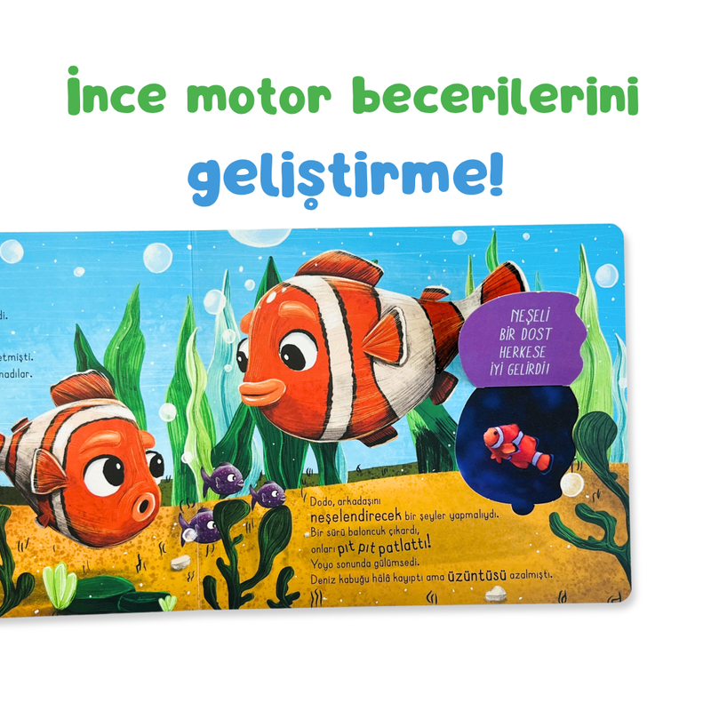 Okyanusu çok seven bir deniz kaplumbağası, uykucu bir palyaço balığı, oyun oynamayı seven bir yunus ve diğer okyanus dostlarımız bu kitapta hayat buluyor.