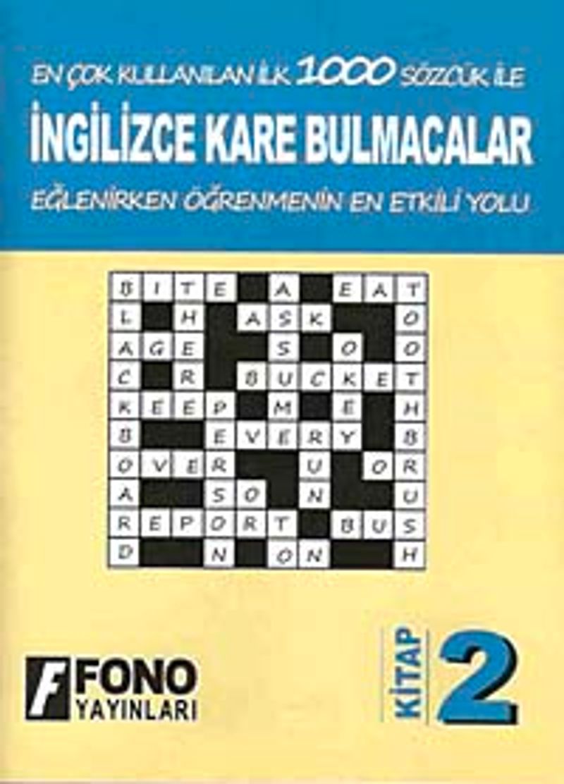 Türkçe sorular, İngilizce cevaplar 26 adet kare bulmaca ve her bulmacada en az 24 sözcük yer almaktadır. Her bulmacanın çözümü kitapta verilmiştir. Düzey olarak A1 seviyesindekiler yani temel ingilizce dilbilgisi olanlar hedeflenmiştir. Ancak daha üst seviyede olanlar için de uygundur.