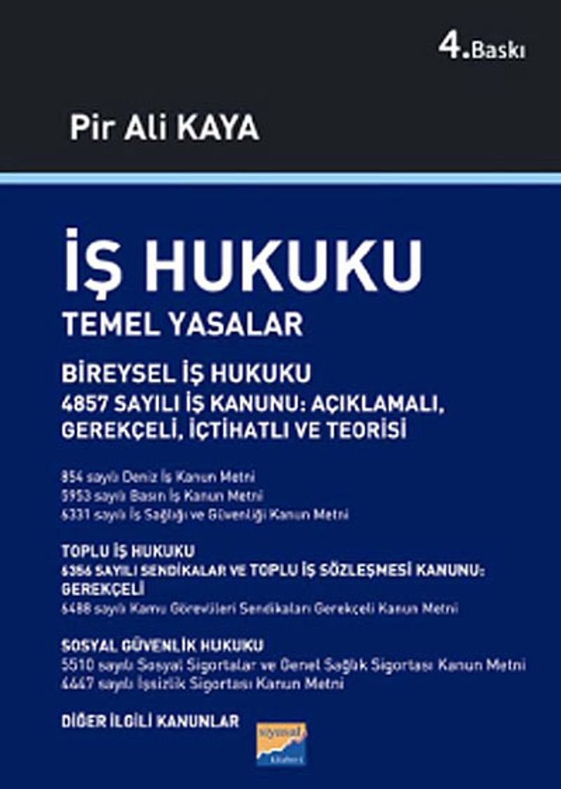 Görevlileri Sendikaları Kanunu metini de yer almaktadır. Üçüncü bölümde 5510 sayılı Sosyal Sigortalar ve Genel Sağlık Sigortası Kanunu ile 4447 sayılı işsizlik sigortası Kanunun güncel metinlerine yer verilmektedir. Dördüncü bölümde Diğer İlgili Kanunlar başlığı altında başta Anayasa’nın ekonomik ve sosyal haklar bölümü olmak üzere, Medeni Kanun, TBK, TCK’nın iş hukuku ile ilgili bölümleri ile Meslek Eğitimi Kanunu, İş Mahkemeleri Kanunu, Hafta Tatili Kanunu ve Öğle Tatili Kanunu metinlerine yer verilmektedir.