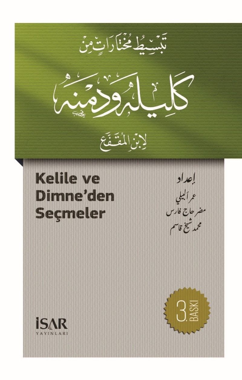 Bir dili öğrenirken o dildeki incelikleri, kelime ve cümle yapılarını, hususi tabir ve deyişleri kavramanın en etkili yöntemlerinden biri de o dilde kaleme alınmış olan edebî nitelikteki eserleri mütalaa etmektir. Nitekim edebî eserler, gerek başlangıç seviyesinde gerekse ileri düzeyde olsun, bir dile ait bütün ifade imkânlarının sergilendiği son derece zengin metin örnekleri olarak karşımıza çıkar. Bu tür metinlerin dil öğrenen kimseler için pratik ve pedagojik bir şekilde yayına hazırlanması ise söz konusu imkânın en verimli biçimde değerlendirilmesine olanak sağlar. Bu doğrultuda İSAR Yayınları Arapça Eğitim Dizisi, Arap edebiyatının seçkin örneklerini gündeme alarak bu tür metinleri belirtilen tarzda yayına hazırlama kararı almış ve ilk olarak da Hint kökenli hikmetli hayvan masallarının İbnü’l-Mukaffa‘ (ö. 759) tarafından Kelile ve Dimne adıyla Arapçaya yapılan uyarlamasından bir seçkiyi ilgili okurların istifadesine sunmuştur.