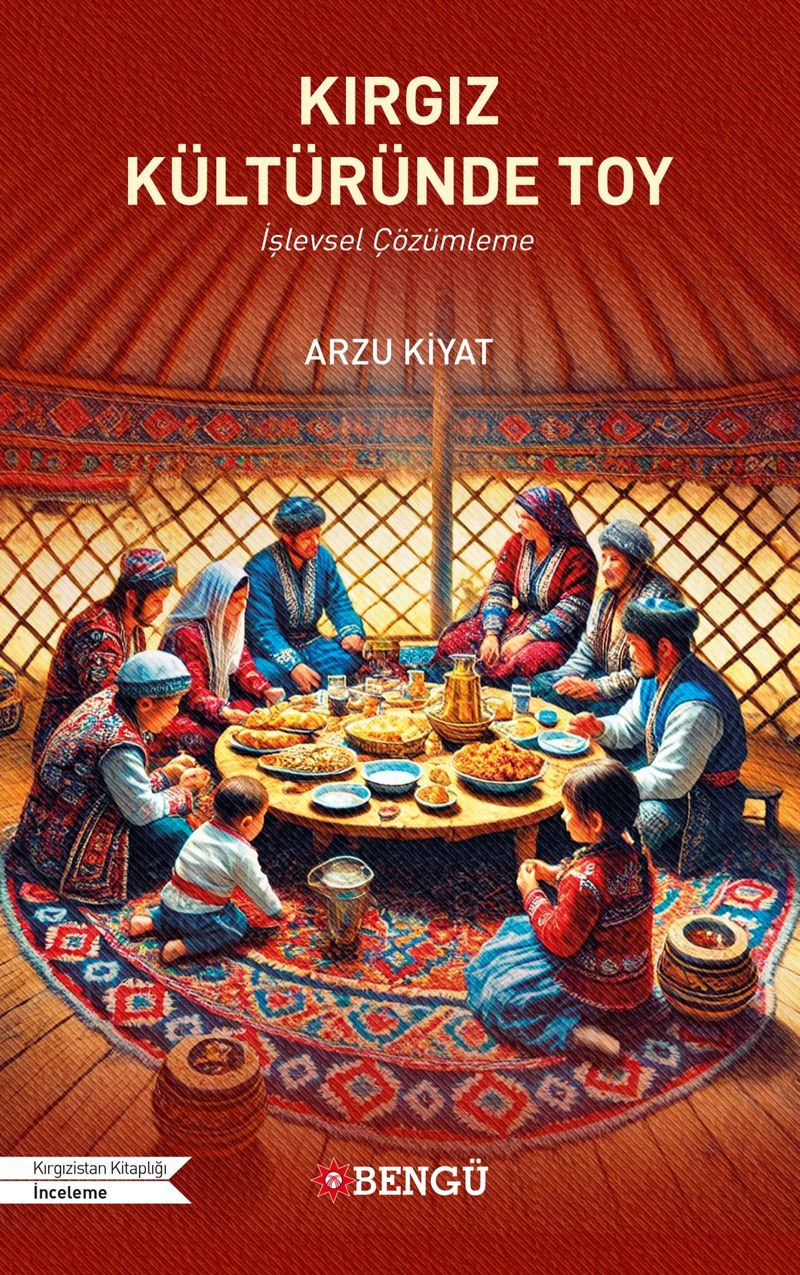Kırgız Kültüründe Toy, Kırgız toplumunda çoñ toy (büyük toy) olarak kabul edilen yeni doğmuş bebeğin doğumunun kutlandığı centek toy, bebeğin beşiğe yatırılma töreni beşik toy, çocuğun ilk adım atma töreni tuşoo toy, erkek çocukların Müslüman olarak kabul edilmelerinin sembolik göstergesi sünnöt toy ve kadın ile erkeğin yaşamlarını birleştirme kararını kutladığı üylönüü toy olmak üzere aile temelli beş toyu inceleyen ve bu toyların işlevlerini değerlendiren bir çalışmadır.