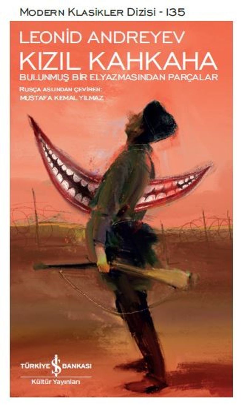 Andreyev’in Rusya’nın Rus-Japon Savaşı’ndan (1904) ağır bir yenilgiyle çıkmasının ardından kaleme aldığı Kızıl Kahkaha, savaşın akıl almaz mezalimi üzerine yazılmış en sarsıcı metinlerden biridir. Bir Rus subayının Mançurya’daki korkunç taarruz sırasında tuttuğu bölük pörçük günlük, onun ölümünden sonra savaşa katılmayan kardeşi tarafından tamamlanır. Genç subay kendi ordusunun mermilerine hedef olarak bacaklarını yitirmiştir. “Kızıl Kahkaha” onun için yaralı, sakatlanmış, paramparça bedenlerin; “kanla kızıllaşan toprakların” simgesidir: “Dünya çıldırdığında böyle gülmeye başlar.” Savaş alanındaki vahşet, hem sonu gelmeyen yürüyüşün tükettiği askerleri hem de bütün bu acılar karşısında büyük bir acze düşen doktorları delirtmiştir. Subayın kardeşi savaşı dışarıdan izlese de ölümü ve acıyı kanıksayıp duyarsızlaşmış, o da tıpkı subay gibi akıl sağlığını yitirmiştir. Savaş öyle akıl dışı bir hale gelmiştir ki oğlunun korkunç bir ölümle can verdiğini gazetelerde okuyan bir ana, bir ay boyunca ondan mektup alır. Ölülere ölülerden mektup gelir. Kızıl Kahkaha, giderek toplu bir cinnete dönüşen savaşın yol açtığı muazzam yıkımın, altüst ettiği hayatların, insanlıktan çıkıp deliliğe sığınanların trajik öyküsüdür.