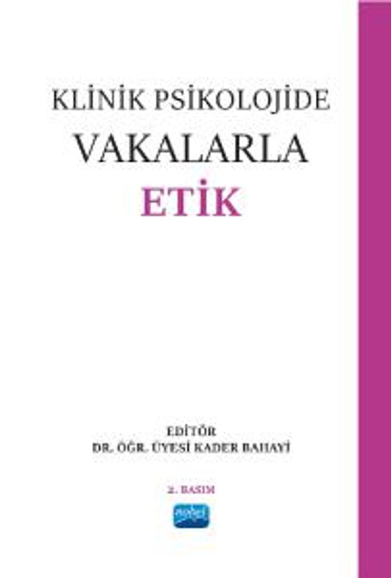 Yirmi üç farklı konu üzerinde, uluslararası boyutta kabul görmüş etik kılavuzlarla ülkemizdeki mevcut uygulama süreçleri ve yaşanmış etik ihlal vakalarından yola çıkılarak oluşturulmuş elliden fazla kurgu vakayı birleştiren ilk ve tek kitap olma özelliği taşıyan bu kitabın yazılmasındaki temel amaç; üniversitelerde lisans ve lisansüstü düzeyde etik ilkeler konusunda eğitim veren akademisyenler, meslek mensupları ve öğrenciler için uluslararası alanda kabul gören yeni yaklaşımlarla Türk kültür ve yaşantısını birleştirme desteği verebilecek bir kaynak oluşturmaktır. Bir psikoloğun meslek hayatında ortaya çıkabilecek sorunlara karşı hazırlıklı olması, sorunları çözebilecek yetkinlik ve donanıma sahip olması, psikoloji ve psikoloji etiğinin gelişim sürecini bilmesi, ulusal ve uluslararası temel metinleri tanıması, etik duyarlılığının yüksek olması gerekmektedir. Bu kitap, bir psikoloğun eğitim sürecinde ihtiyaç duyacağı bir kılavuz, meslek hayatı boyunca karşılaşacağı ikilemlerin çözümünde yol gösterici bir rehber olacaktır.