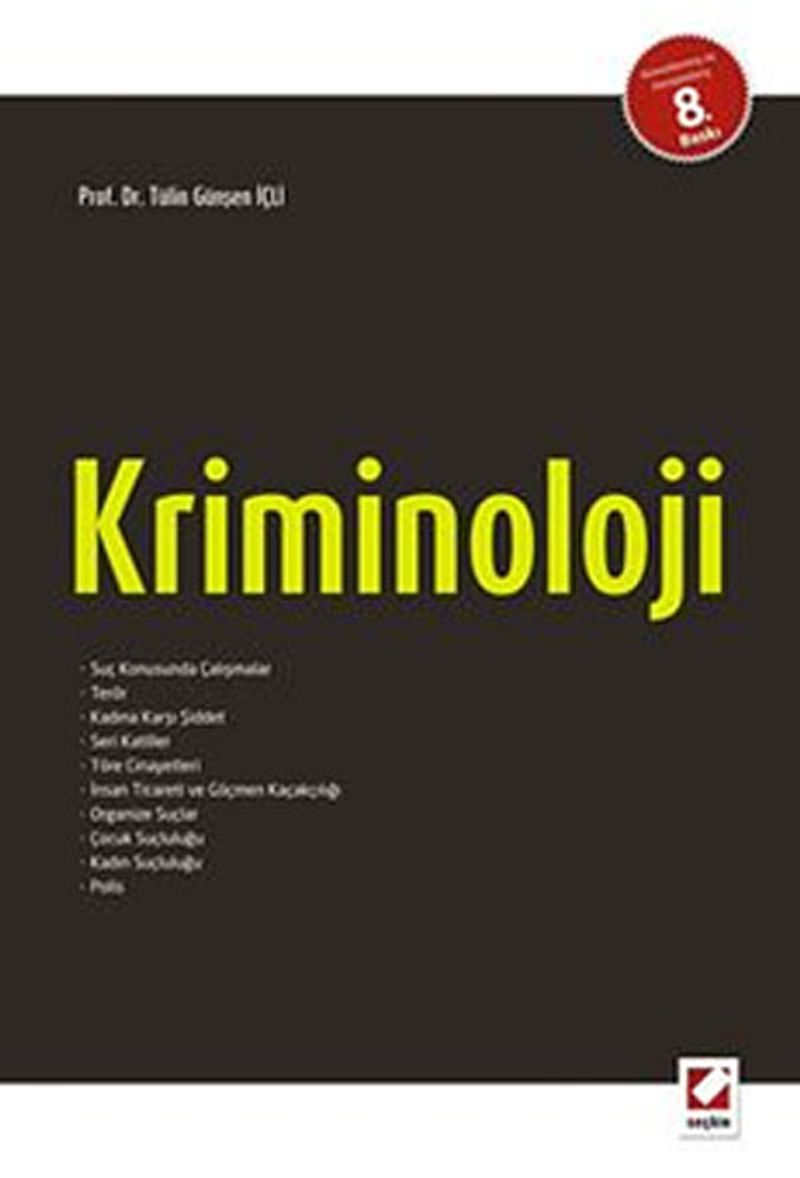Kriminoloji, suçlu davranışı ve toplumun bu davranışa tepkisini inceleyen bilimsel bir yaklaşımdır. Suçun tanımı ile başlayıp suçla ilgili teorik bilgiler ışığında suçun ve şiddetin nedenlerini belirleyerek, suçu bütün yönlerini derinlemesine inceleyen kitap, Türkiye'nin suç haritasını ve suçlu profilini çıkarmayı amaçlamaktadır. Yeni suç türleri ve istatistiklerle güncel hale getirilen kriminoloji kitabının ilgili tüm kişi ve kuruluşlara yararlı olacağını umuyoruz.