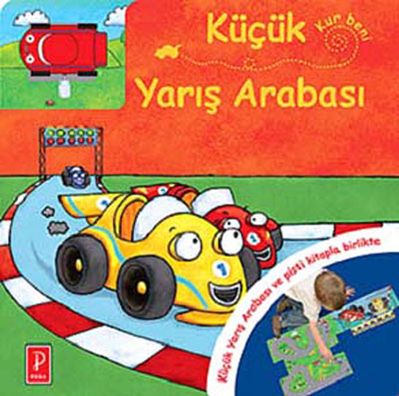 Haydi yarışalım!Kalın sayfalarıyla güvenli, oyun pistiyle ve oyuncağıyla eğlenceli, çok keyifli bir kitap. Kitabı okuduktan sonra küçük traktörü ve küçük yarış arabasını kurup pistin üzerine bırak. Hızla pistte yol almasını seyret. Çocuğunuzun uzun süre elinden bırakamayacağı bu kitap, ona kitabın ne kadar eğlenceli olduğunu öğretecek. Kitap sevgisini aşılamak için bu mükemmel fırsatı kaçırmayın. İyi eğlenceler.