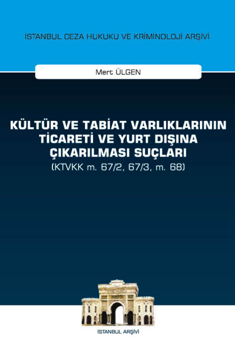 Kültür ve tabiat varlıkları bakımından çok zengin bir birikime sahip olan ülkemizde, bu varlıklar ile ilgili en çok işlenen suçlar arasında, kültür ve tabiat varlıklarının ticareti ve yurt dışına çıkarılması suçları yer almaktadır. Ancak belirtilen suç tipleri ile ilgili sınırlı sayıda akademik çalışmanın yapılmış olması, böyle önemli bir konunun ele alınmasını gerekli kılmış, böylece Türk hukukuna mütevazı bir katkı sağlamak amaçlanmıştır. Bu düşünceden hareketle oluşturulan eserde, önce kültür ve tabiat varlıklarıyla ilgili kavramlar ve bu varlıkları koruma hukukunun Türkiye'deki tarihsel gelişimi ile kültür ve tabiat varlıklarının korunması konusunda yapılan uluslararası hukuktaki bazı düzenlemelere yer verilmiştir. Daha sonra "Ticareti Yasak Olan Kültür ve Tabiat Varlıklarının Ticareti Suçu (KTVKK m. 67/2)", "Ticareti Yasak Olmayan Taşınır Kültür Varlıklarının İzinsiz Ticareti Suçu (KTVKK m. 67/3)" ile "Kültür ve Tabiat Varlıklarının Yurt Dışına Çıkarılması Suçu (KTVKK m. 68)" incelenmiştir.(ARKA KAPAKTAN)