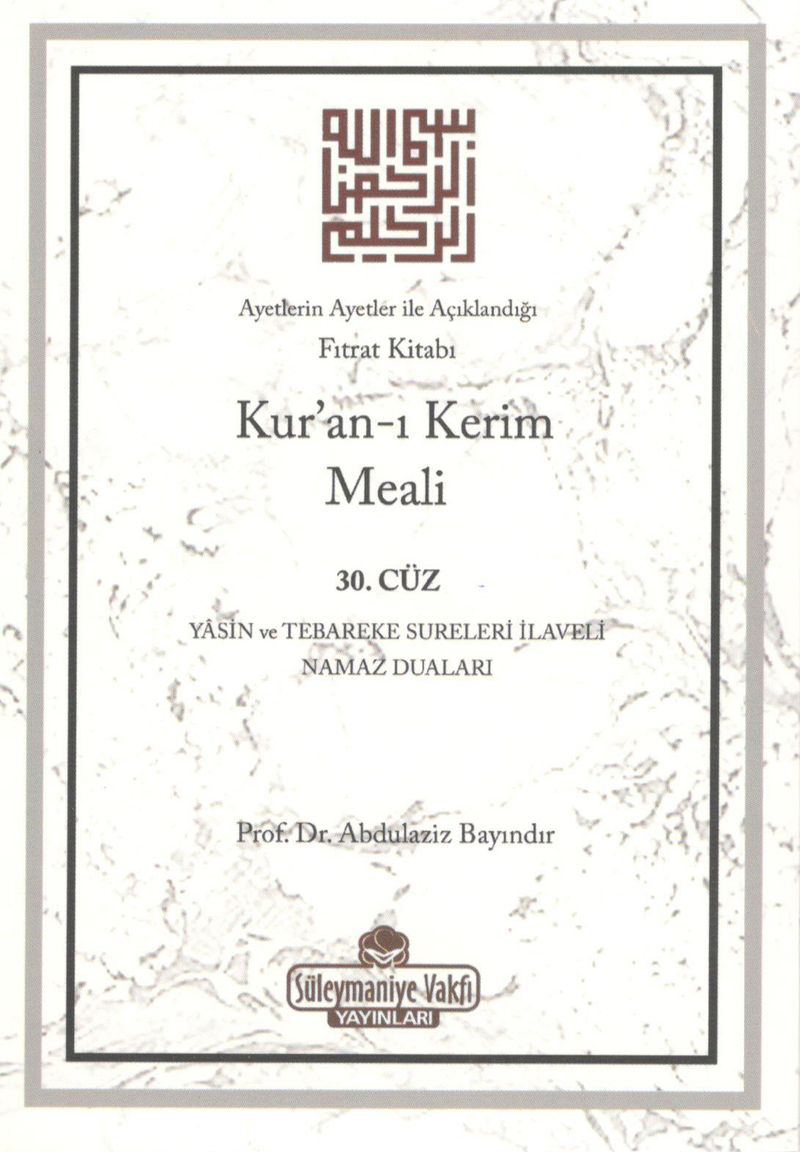 Kur'an-ı Kerim Meali 30. Cüz (Yasin ve Tebareke Sureleri İlaveli Namaz Duaları)