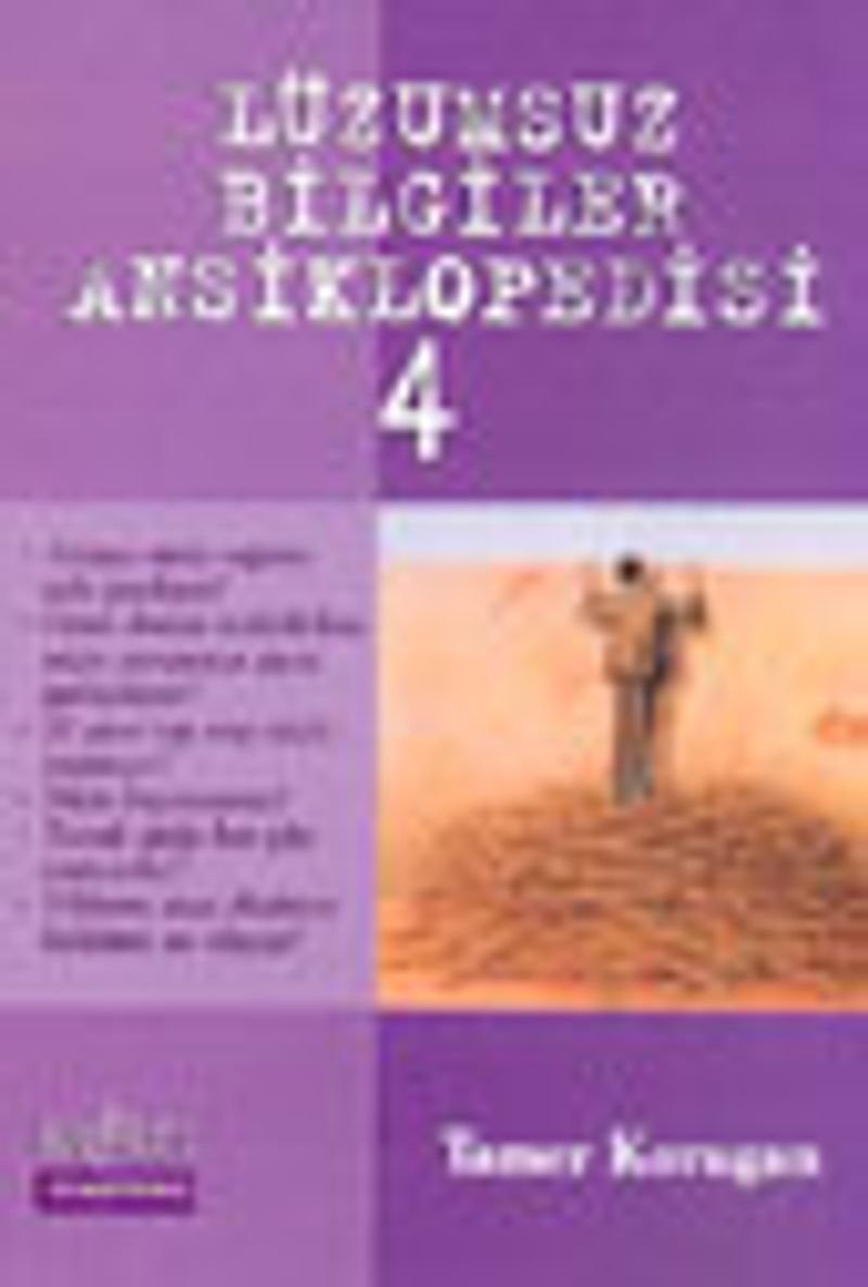 Aykırı klasiği Lüzumsuz Bilgiler Ansikpoledisi'nin bu dördüncü kitabında bu kez 90 sorunun yanıtları var. Sorular ilginçliğinden bir şey kaybetmiyor ama yanıtlar bu kitapta biraz daha etraflı sunuluyor. Böylece bundan önceki üç kitapta yer alan 388 soruyla birlikte toplam 478 lüzumsuz sorunun lüzumsuz yanıtlarına sahip oluyorsunuz! İşte dördüncü kitaptaki sorulardan bazıları: