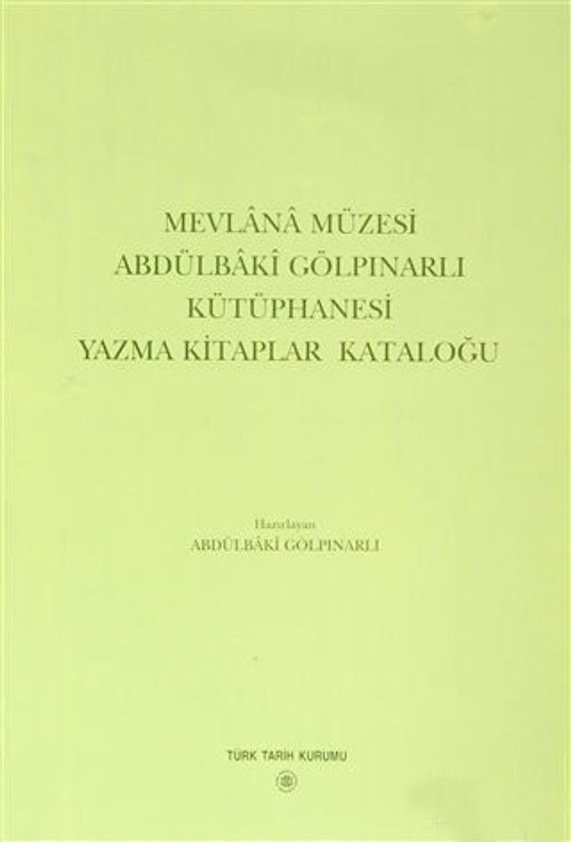 Mevlana Müzesi Abdülbaki Gölpınarlı Kütüphanesi Yazma Kitaplar Kataloğu