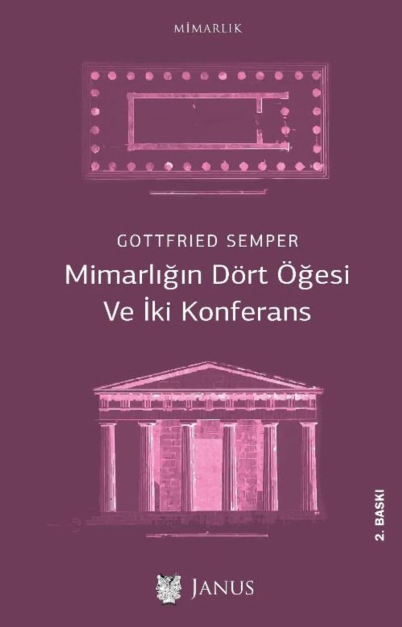 Mimarlığın Dört Öğesi Ve İki Konferans adını verdiğimiz bu kitap, 19. yüzyıl Alman dilinde mimarlık ve sanat tarihinin en büyük kuramcısı sayılan Gottfried Semper’in mimarlık ve üslup konularını işlediği en önemli çalışmalarını biraraya getiriyor.