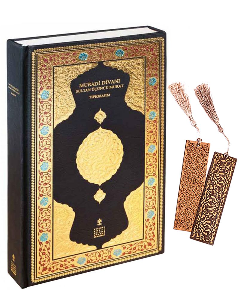 Muradi Divanı (Ciltli) + Ahşap Ayraç - Osmanlı Desen + Ahşap Ayraç - Lale - Rölyef Cevizli