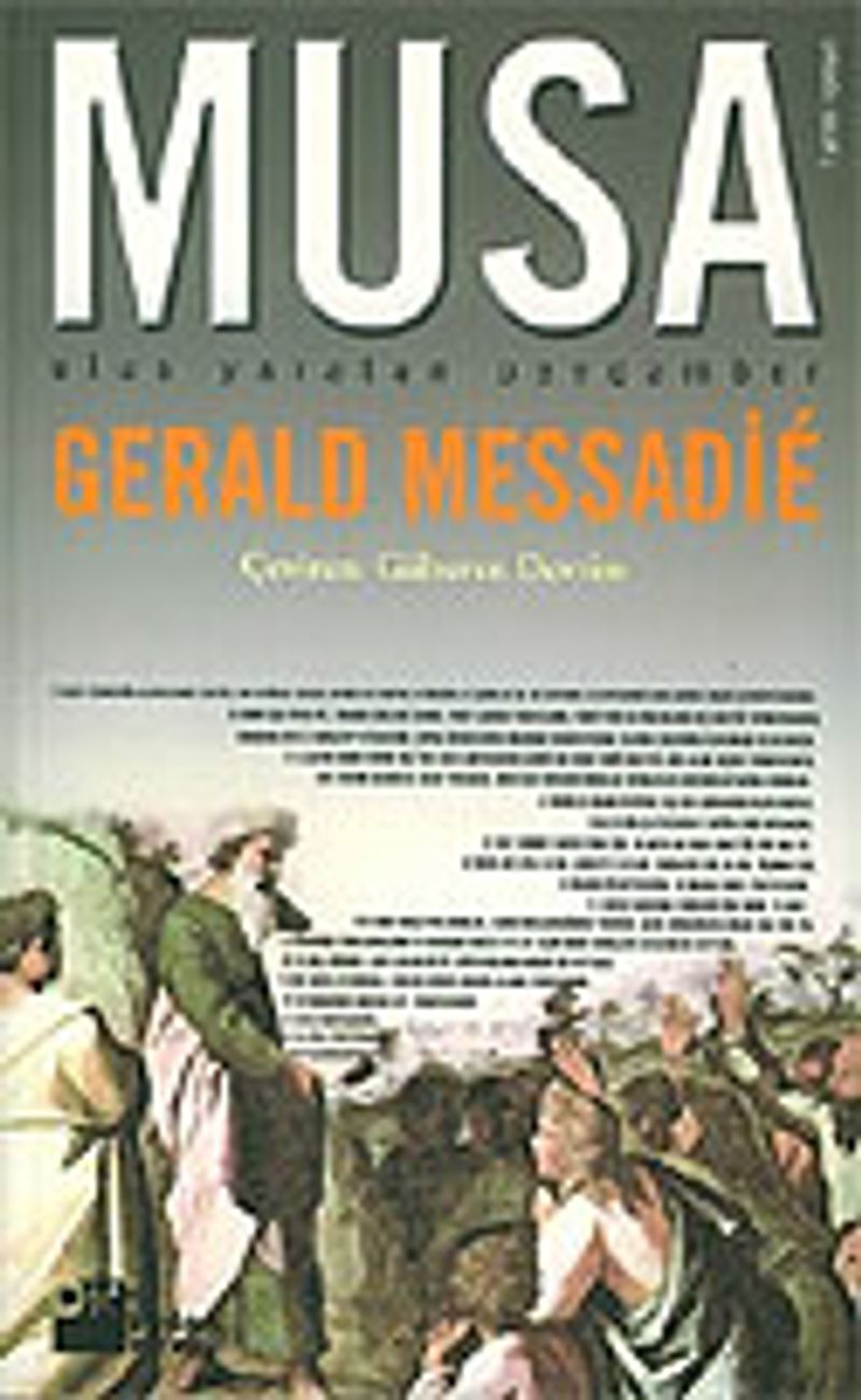 Musa, dünya tarihinin devlerinden biridir. Üç bin yıl önce insanlığa sunduğu tektanrıcı inanç, üç büyük "kitaplı" dinin anası olmuş, böylece, Doğu’nun ve Batı’nın kaderi, bir daha geri dönmemecesine değişmiştir. Kişiliği, Eski Ahit’in ilk beş kitabında anlatıldığı biçimiyle bir efsane yaratmış ve efsane ,"insan Musa"yı öylesine sarıp kuşatmıştır ki, bazı tarihçiler onun bir "mit" olduğu kanısına varmış, Musa’nın gerçekten yaşamış bir tarihi kişi olduğundan bile kuşku duymuşlardır. Gerald Messadie, işte onu, gündelik hayatındaki Musa’yı, bir roman örgüsü içinde hayata döndürüyor.