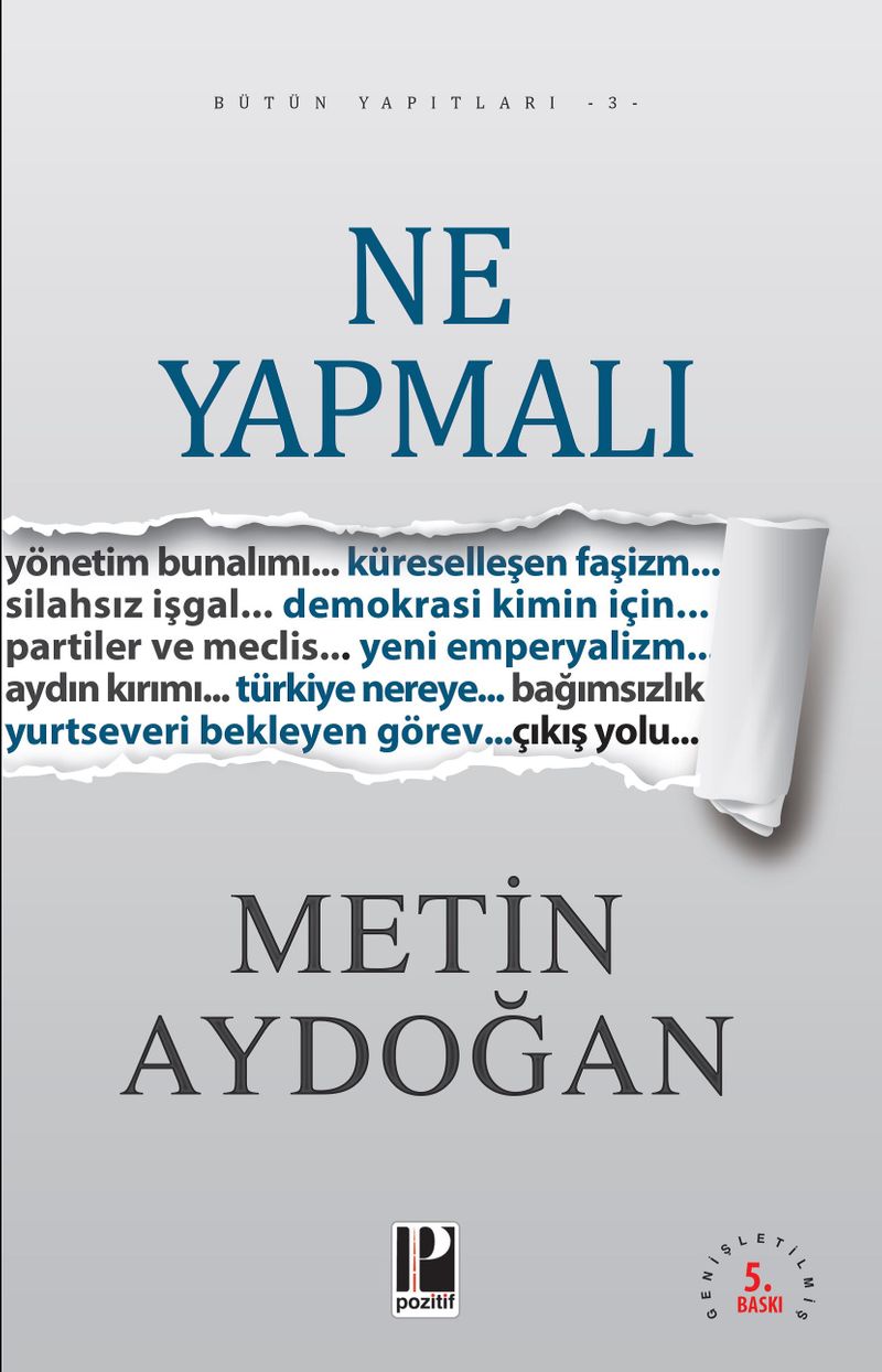Elinizdeki kitapta, çıkış yolu arayışı; tarihsel ve toplumsal dayanaklarıyla ele alınıyor, Türkiye’nin karşılaştığı sorunlar irdeleniyor ve çözüme yönelik kuramsal çerçeve, somut veriler üzerine oturtuluyor. 'Ne Yapmalı', çözüm arayışına somut bir öneriyle katılıyor.