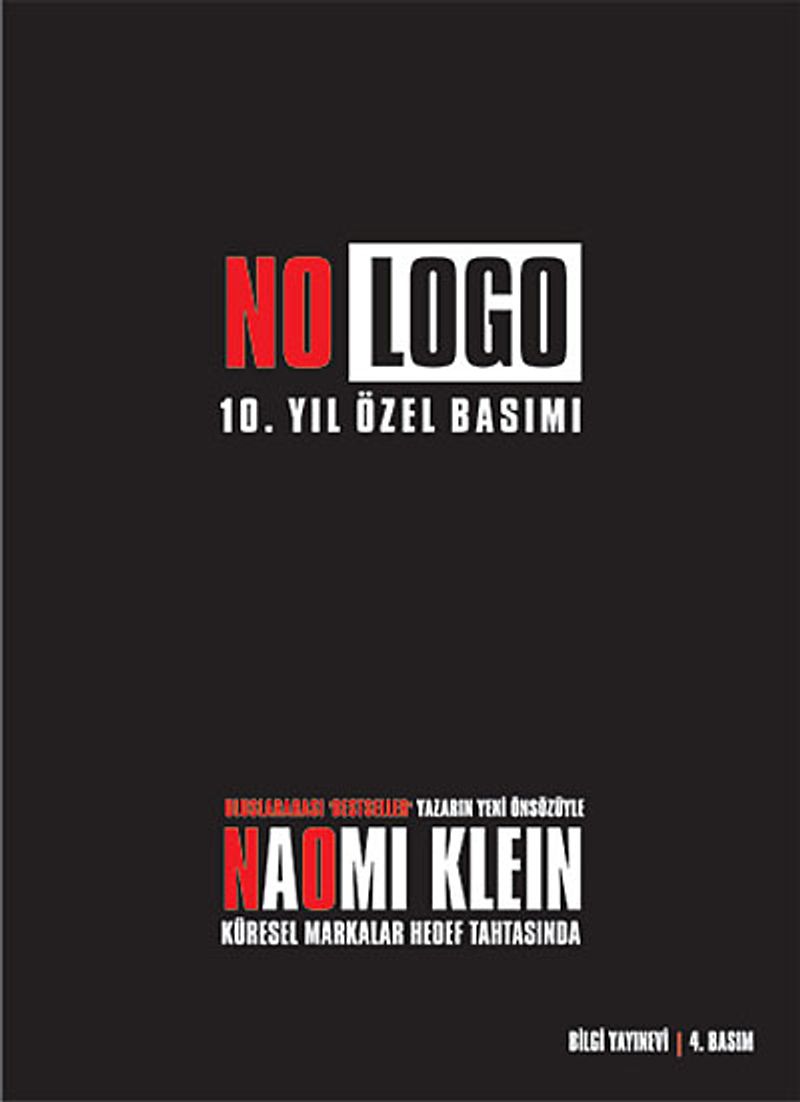 No Logo bilgi çağının temel vaatlerine ihaneti ortaya çıkarıyor: seçenek, karşılıklı etkileşim ve özgürlüklerin artışı. Eşit parçalar halinde kültürel analiz, siyasi bildiriler, marka fareliği anıları ve gazeteciliğin ortaya çıkışı. No Logo ambalajlanmış dünyamızı alıyor ve parçalarını net bir ekonomik ve sosyal perspektife oturtuyor. Naomi Klein giderek tırmanan küreselleşme karşıtı eylemci direncini heyecanla izliyor; en tanınmış markalardan bazılarının kendilerini bir sprey boya kutusunun, bir bilgisayar korsanlığı olayının ya da uluslararası bir şirket karşıtı kampanyanın yanlış tarafında bulduklarını açıklıyor ve neden giderek artan sayıda gencin daha adil bir dünya talebiyle sokaklara döküldüğünü anlatıyor.
