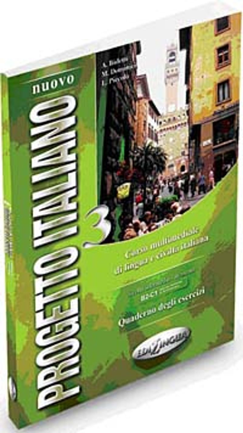 İleri seviyede (B2-C1) İtalyanca öğretici, Nuovo Progetto Italiano 3 ile birebir paralel alıştırmalar, her dört ünitede bir bölüm testleri, gramer özeti ile 144 sayfa çalışma kitabı.