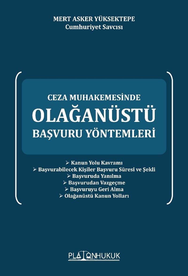 “Ceza Muhakemesinde Olağanüstü Başvuru Yöntemleri” ile ilgili hazırladığım bu eserin birinci baskısını uygulamada karşımıza çıkan sorunların aşılmasına yardımcı olacağı düşüncesi ile sizlerin beğenisine sunmanın mutluluğunu yaşıyorum.