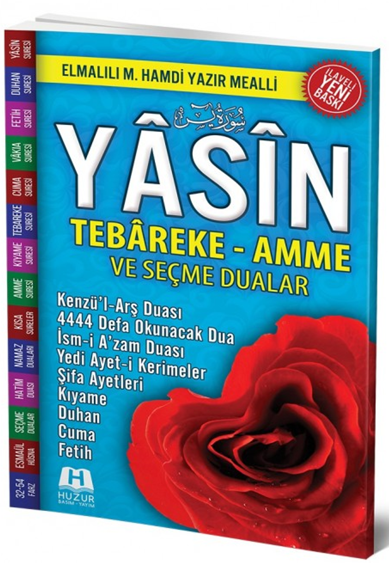 Bilgisayar hatlı, kolay okunan, renkli Yasin-i Şerif’lerimizde; halk arasında üstün faziletlerinden dolayı çok okunan sûreler, namaz sûreleri, namaz duaları, günlük hayatla ilgili çeşitli dualar, tesbihler ve salavat-ı şerifler bulunmaktadır.