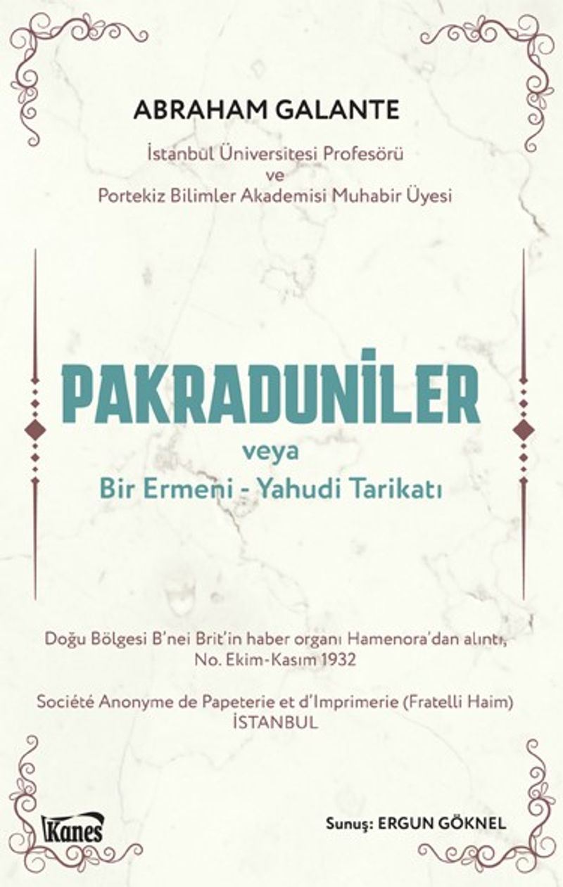 Yahudi bilim insanı ve yazar Prof. Abraham Galante’nin 1933 yılında yayınladığı bir kitapçık, daha doğrusu risale: Les Pacradounis ou Une Secte Arméno-Juive (Pakraduniler veya bir Ermeni-Yahudi Tarikatı) Fransızca yazılmış ve Fratelli Haim basımevi tarafından yayınlanmıştır.