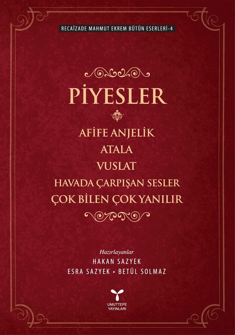 Recaîzade Mahmut Ekrem’in “Bütün Eserleri”nin dördüncü cildi, onun piyeslerini içeriyor. Edebî hayatında şiirin ardından en çok eser verdiği tür tiyatro olan Recaîzade Ekrem’in dört piyesi vardır. Bunlar Afife Anjelik (1870), Atala (1873), Vuslat (1874) ve Çok Bilen Çok Yanılır (1916) adlarını taşıyor. Afife Anjelik’in yayım tarihi, Recaîzade Ekrem’in edebî faaliyete tiyatro ile başladığını göstermektedir. Dolayısıyla, kronolojik bakımdan şiirden daha önce olsa da onun kurmaca külliyatındaki niceliksel öncelik şiire aittir. Üstelik, o, birkaç yıl içinde yazıp yayımladığı oyunlarının ardından yönünü şiire çevirecek ve o türdeki eserleriyle ün kazanacaktır. Hazırladığımız külliyatın düzenlemesini yaparken tiyatroyu bu gerekçeyle dördüncü cilde bırakmayı tercih ettik.