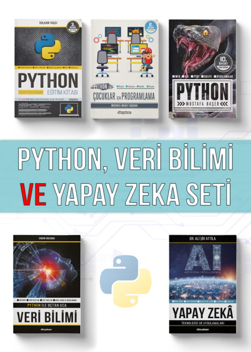 Prof. Dr. Mustafa Başer, Volkan Taşcı,  Mustafa Murat Coşkun, Engin Bozaban ve Dr. Ali Şir Attila eğitmen ve yazarların kaleme aldığı kitaplardan oluşan bu setin amacı PYTHON Programlama diline başlangıcı sağlam temeller üzerinden yapmanız amaçlanmıştır. Python ile Veri Bilimi hakkında merak ettikleriniz, Yapay Zeka proje ve uygulamalarını bu kitapta öğrenebilirsiniz.