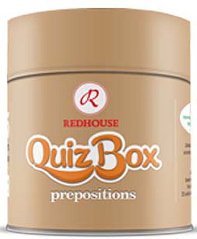 Redhouse Quiz Box • Prepositions kutumuzdaki 125 karttan herbirinin üzerinde, boşluklu bir cümle bulunuyor ve altında verilen dört seçenek içerisinden cümlede boş bırakılan yere hangi sözcüğün gelmesi gerektiğini bulmanız isteniyor. Bu boşluklara İngilizcede “preposition” adı verilen “about, by, for, in, of, on, to, with” sözcüklerinden birinin gelmesi gerekiyor. Sorunun doğru cevabı kartın arka yüzünde yer alıyor.