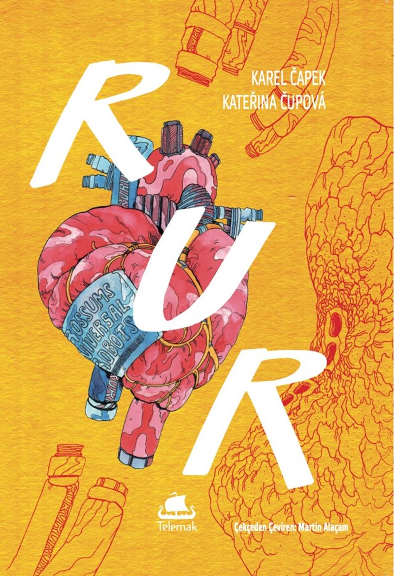 Modern Çek edebiyatının kurucularından Karel Čapek, R.U.R. isimli bilimkurgu tiyatro oyununu 1920’de yazdı. 25 Ocak 1921’deki ilk sahnelenişinden itibaren kitleleri hem dehşete düşürdü hem de büyüledi. Öyle ki, 1923’e gelindiğinde oyun 30 dile çevrilmişti. I. Dünya Savaşı’nın dehşetinin dönüştürdüğü bir dünyada gelmekte olana dair bir kehanetti: Atların yerini mekanize araçların, tüfeğin yerini otomatik silahların aldığı bir savaşın ardından ilerlemenin durdurak bilmeyen hareketini mantıki sonucuna götürüyor Rossum’un Üniversal Robotları. Dünyaya “Robot” kelimesini hediye eden Čapek’in bu eseri insanlığın kendi elleriyle yarattığı makinelerin elinde son bulduğu bir yokoluş tasavvuru sunuyor. İhtiyar Rossum’un formülü yapay insanımsılar insana kafa tutuyor. Yazılışından bir yüzyıl sonra dahi R.U.R. bugünü anlatıyor: İnsansız araçlar, robotik uzuvlar, suni organlar ve yapay zeka araştırmalarının günbegün ilerlediği, işin sonunun konuşulduğu, üretimin insansızlaştığı yeni bir yüzyıl için de zorunlu okuma vasfını korur. Kateřina Čupová, özgün estetiğiyle, R.U.R.’u bir çizgi roman olarak yeniden yaratıyor.