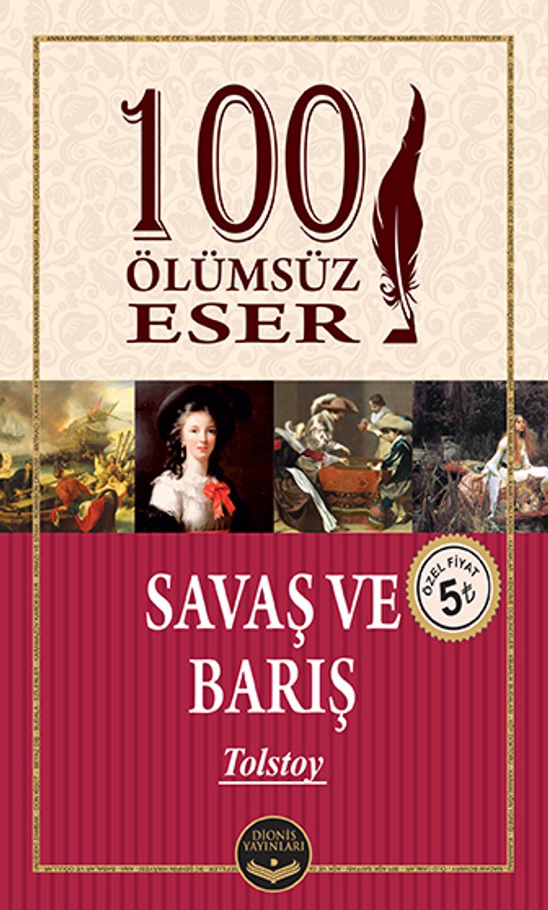 Napolyon’un Rusya’yı işgali sırasında geçen Savaş ve Barış, yazılmış en büyük romanlardan biri olarak kabul edilir. Romanın baş kahramanları hayatın anlamını arayan Pierre Bezukhov ve sivri dilli Prens Andrei savaşın acılarıyla yoğrulmuşlar; Natasha Rostov ise düşüncesiz davranışları nedeniyle mutluluğunu tehlikeye atmıştır. Tolstoy, karakterlerinin değişen kaderlerini takip ederken, insanlığa bakışını hem epik özellikleri olan hem de içten bir hünerle ele alıyor ve muhteşem br roman ortaya çıkarıyor.