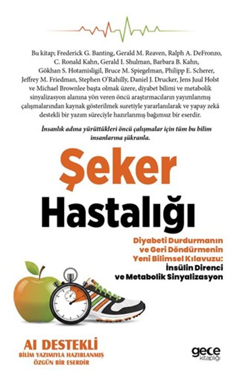Şeker Hastalığı – Diyabeti Durdurmanın ve Geri Döndürmenin Yeni Bilimsel Kılavuzu: İnsülin Direnci ve Metabolik Sinyalizasyon, metabolik sinyal ağlarının karmaşıklığı herkesin anlayabileceği berrak bir çerçeveye dönüştürüyor. Frederick G. Banting'den Gerald M. Reaven, Ralph A. DeFronzo ve C. Ronald Kahn'a; Gerald I. Shulman, Barbara B. Kahn, Gökhan S. Hotamışlıgil, Bruce M. Spiegelman, Philipp E. Scherer, Jeffrey M. Friedman, Stephen O'Rahilly, Daniel J. Drucker, Jens Juul Holst ve Michael Brownlee'ye uzanan öncü isimlerin yayımlanmış çalışmalarına titizlikle atıf yapılarak ve yapay zekâ destekli bir yazım süreciyle hazırlanan bu bağımsız eser; dağınık kanıtı anlamlı bir bütün hâline getirir, yerleşik mitleri ayıklar ve okura güvenilir bir yol haritası sunar. İnsanlık adına sürdürdükleri öncü çalışmalar için tüm bu bilim insanlarına şükranla.