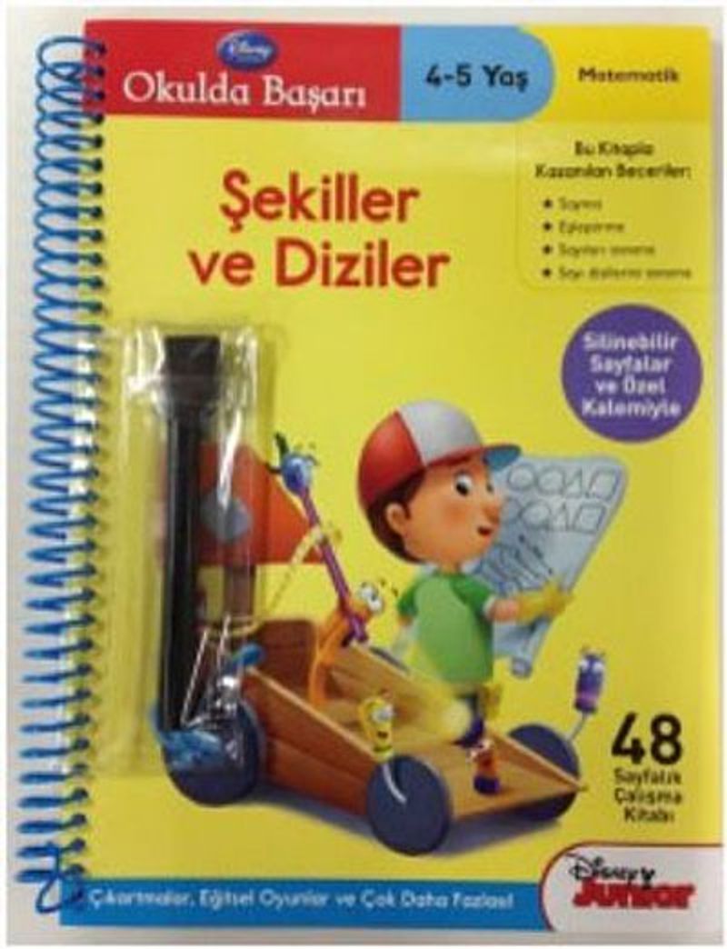 Silinip temizlenebilen sayfaları ve özel kalemiyle bu çalışma kitabı, çocuğunuzun en önemli zihinsel becerileri kazanması için uzmanlar tarafından hazırlanan Disney Okulda Başarı serisinin vazgeçilmez bir parçası olacak. Bu kitapta kazanılan beceriler: Sayma Eşleştirme Sayıları tanıma Sayı dizilerini tanıma Ürün özelliği: Çalışma defteri olarak kullanılabilme özelliği Temizlenebilen sayfalar Silgili özel kalem Sayı çıkartmaları