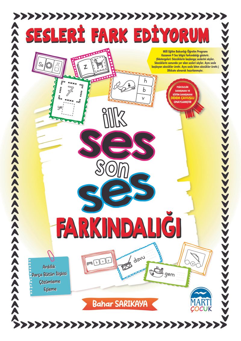 SESLERİ FARKEDİYORUM kitabı bu alanda zorluk yaşayan yada pratik ihtiyacı olan çocuklarımızın bolca egzersiz yapmasını sağlayan ; ardıl işlem becerisi, muhakeme, parça bütün ilişkisi ve çözümleme yapabilme gibi bilişsel becerilerini doğrudan etkileyen bir etkinlik kitabıdır.