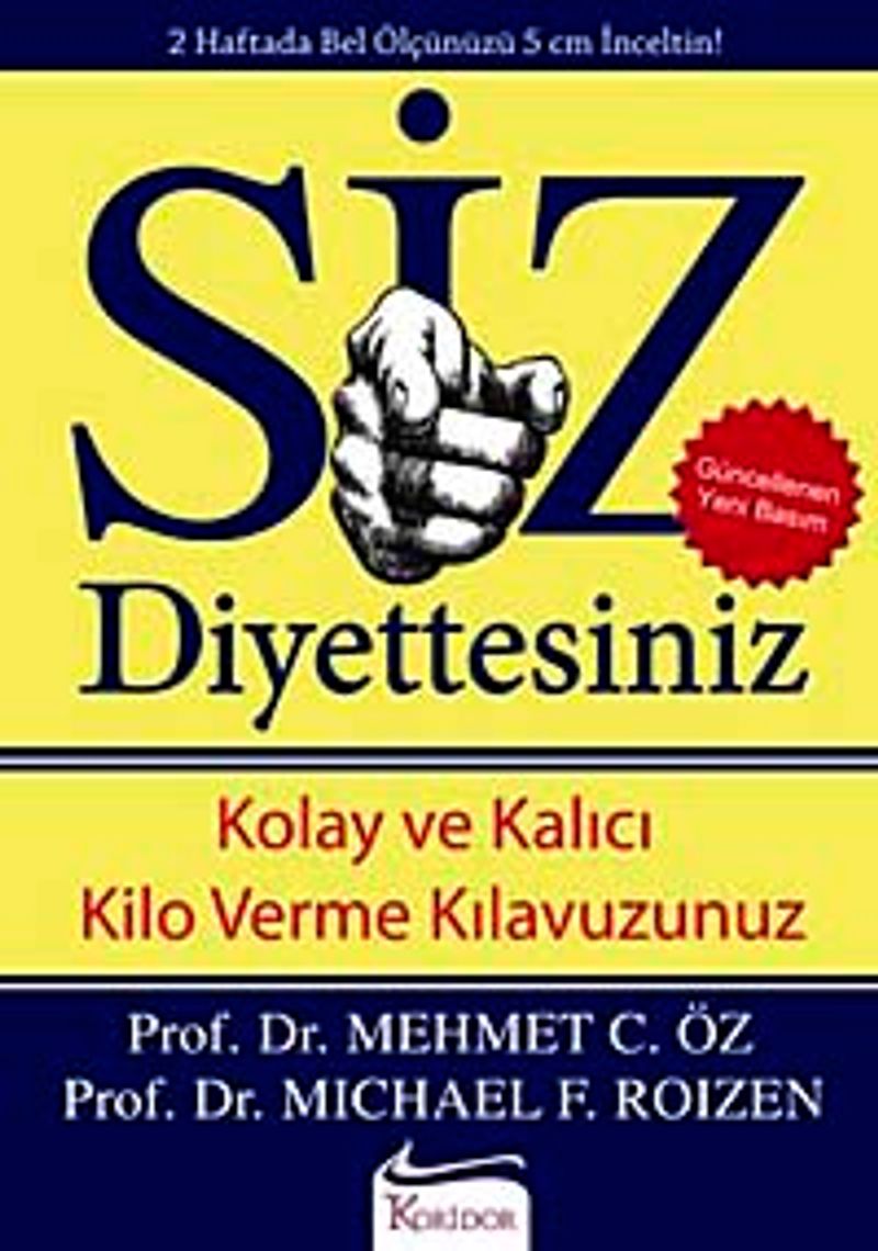 SİZ: Diyettesiniz kitabında Dr. Mehmet Öz ve Michael F. Roizen, hem biyolojik hem de psikolojik perspektif ile diyetin en yaygın gizli tehlikelerini günışığına çıkarttılar. Güncellenen bu baskıda var olan bütün o iyi şeyleri ve çok daha fazlasını bulacaksınız! Früktozun aşırı kilolu bir insan için nasıl bir zehre dönüştüğünü ve kilonuzun bel ölçünüz kadar önemli olmadığını öğreneceksiniz. Karnınızın içinde polis görevi gören “omentum” adlı organ hakkında bilgiler edinecek, bazı hatalar yapmanın neden kabul edilebilir olduğunu kavrayacak, sonra da onları tersine çevireceksiniz. Belki de en önemlisi, yapacağınız basit bir değişiklikle, günlük ihtiyacınız olandan 100 kalori daha az tüketerek beden ölçünüzde önemli bir farklılık yaratabilirsiniz.