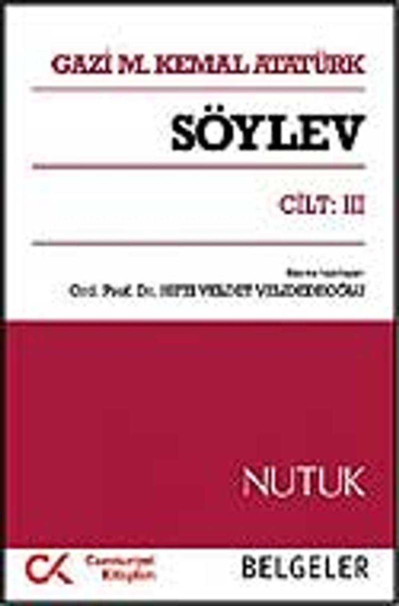 Gazi Mustafa Kemal Atatürk’ün SÖYLEV’inin ilk cildi metin, üçüncü cildi ise, metnin dayandığı tarihsel belgelerden oluşmaktadır. Bu nedenle, metindeki olayları derinlemesine anlamak ve izlemek isteyenler, SÖYLEV’i bu üçüncü ciltteki BELGELER ile birlikte okuyacaklardır; çünkü Ulusal Kurtuluş Savaşı’nın ATATÜRK tarafından hangi kişi ve örgütlerle, nasıl başlatılıp yürütüldüğü ve başarıya ulaştırıldığı ancak bunlarla açıklığa kavuşmaktadır. Ayrıca türlü nitelik ve biçemde yazılmış olan bu belgeler, Gazi Mustafa Kemal’in, Kurtuluş Savaşı sırasında hangi güçlüklerle boğuştuğunu göstermekte ve okuyanları şaşırtmaktadır.