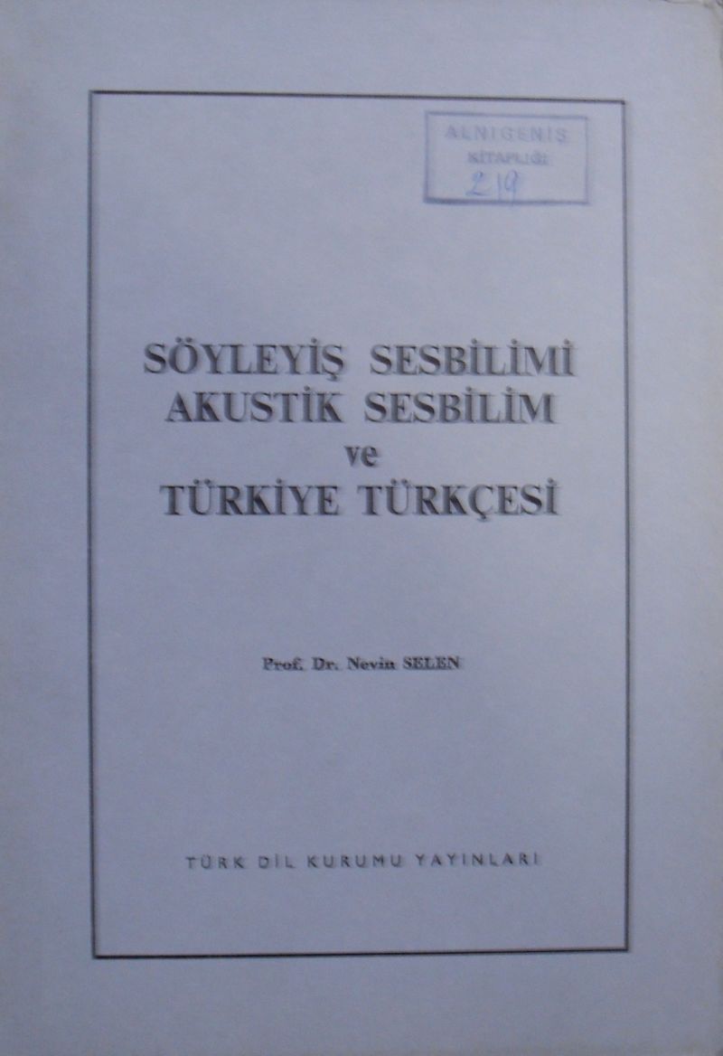Söyleyiş Sesbilimi Akustik Sesbilimi ve Türkiye Türkçesi / 14-C-3