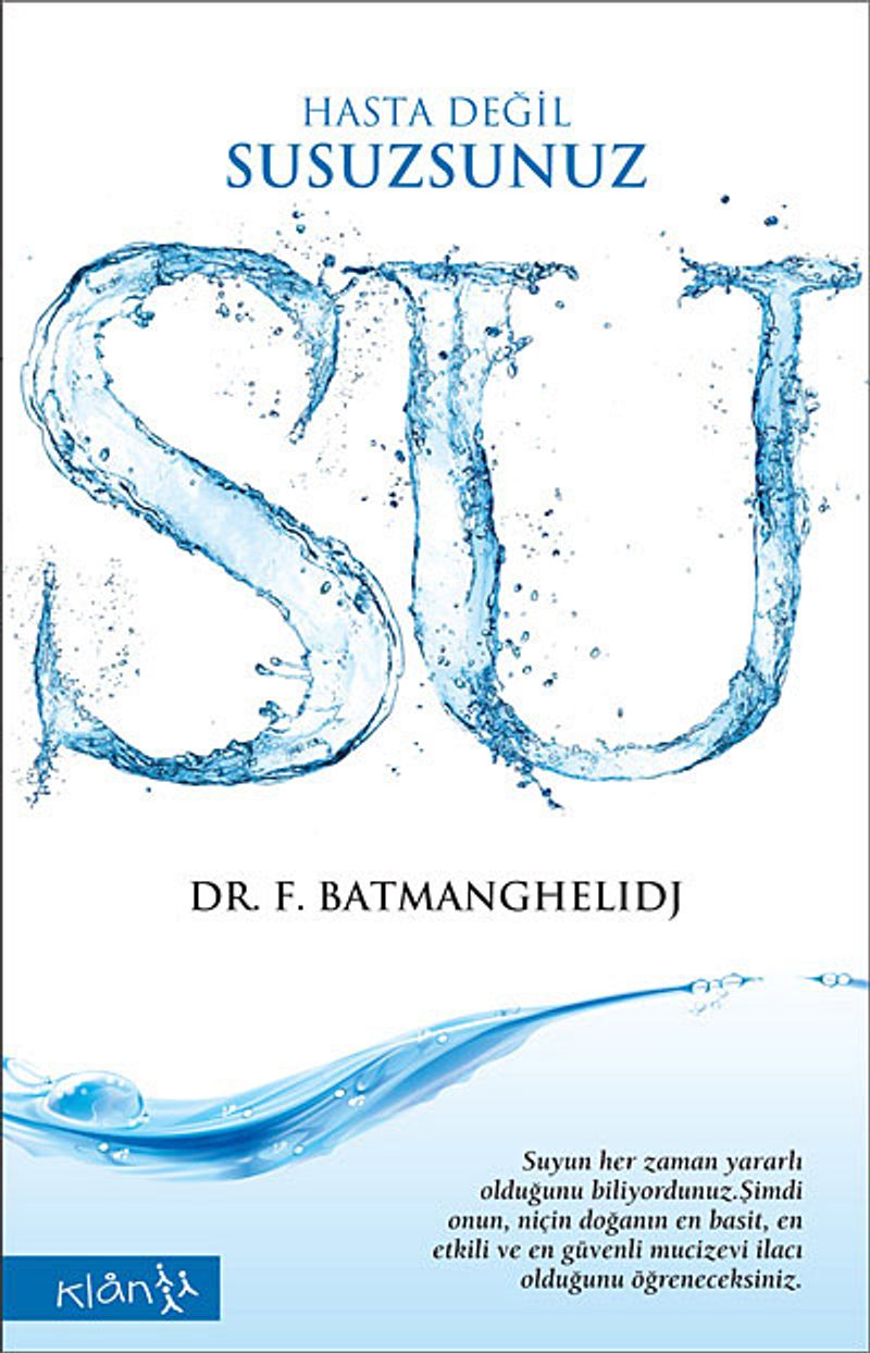Bedenimizdeki suyun rolü ile ilgili olarak yirmi yıldan uzun bir süredir devam eden klinik çalışmaların ve bilimsel araştırmaların sonucunda, öncü bir tıp doktoru ve tanınmış bir yazar olan Batmanghelidj, suyun -evet yanlış anlamadınız suyun!- pek çok çözümsüz hastalığı nasıl iyileştirebildiğini keşfetmiştir. Basit bir şekilde sıvı ve tuz dengenizi ayarlayarak yüzlerce hastalığı iyileştirebilir, hastalıklardan korunabilir, ilaçlarınızı bir kenara atabilir ve sağlıklı bir yaşamın tadını çıkarabilirsiniz. Elinizdeki kitapta öğreneceğiniz keşiflerden bazıları şunlardır: