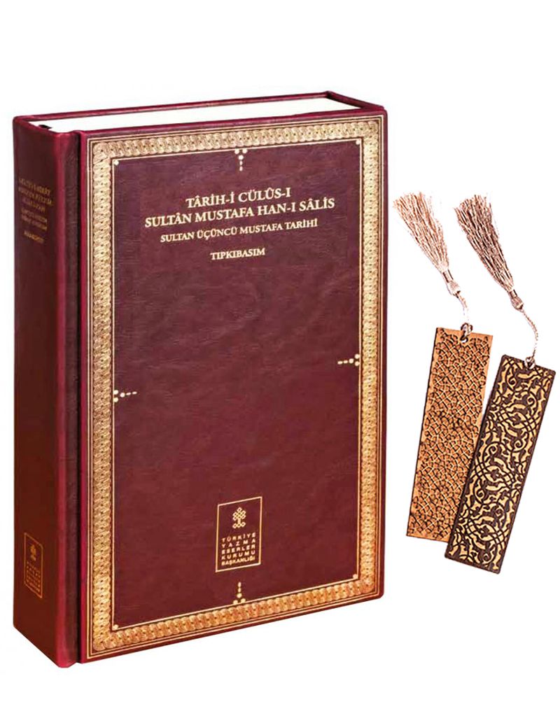 Sultan III. Mustafa Tarihi + Ahşap Ayraç - Osmanlı Desen + Ahşap Ayraç - Lale - Rölyef Cevizli