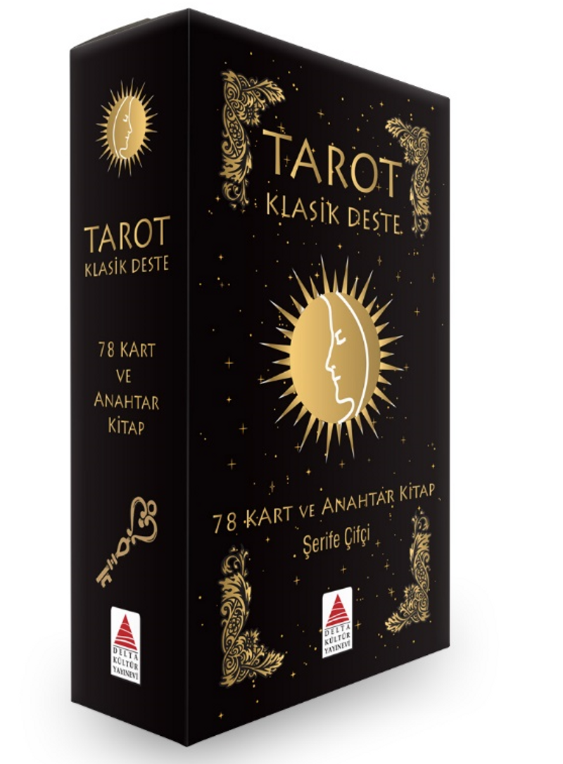 Karton kutu içerisinde geleneksel Tarot’un 78 kartı ve bu kartları yorumlamakta yardımcı olacak Anahtar Kitabı mevcuttur.