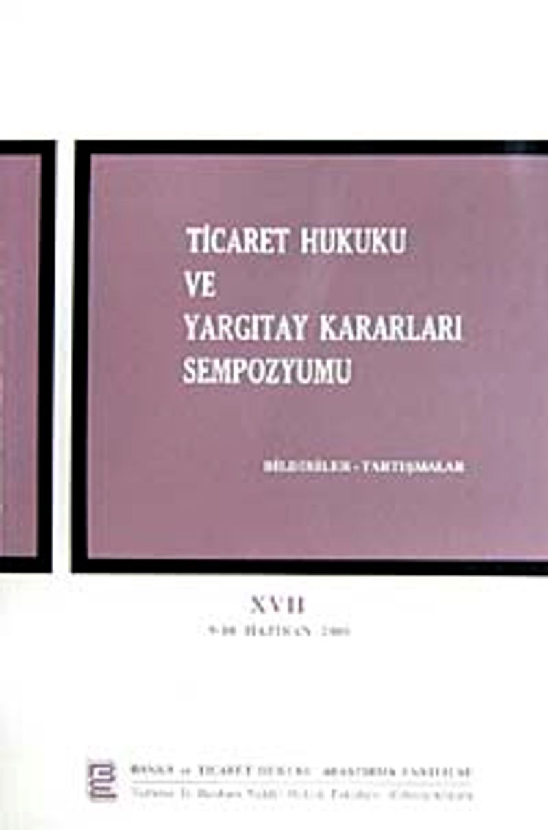 Ticaret Hukuku ve Yargıtay Kararları Sempozyumu Bildiriler Tartışmalar XVII 9-10 Haziran 200