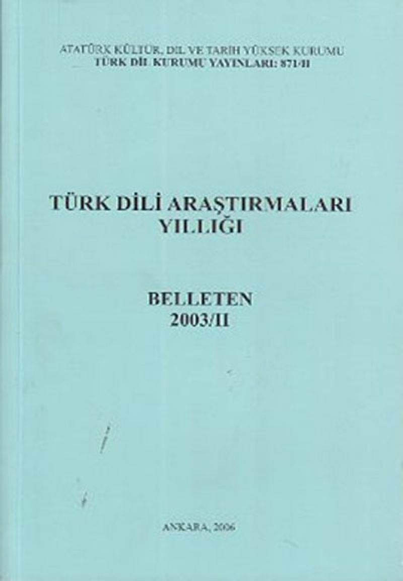 Türk Dili Araştırmaları Yıllığı Belleten 2003 / 2