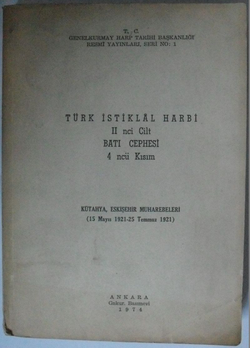 Türk İstiklal Harbi / II nci Cilt / Batı Cephesi / 4 ncü Kısım / Kütahya, Eskişehir Muharebeleri Kod:6-E-20