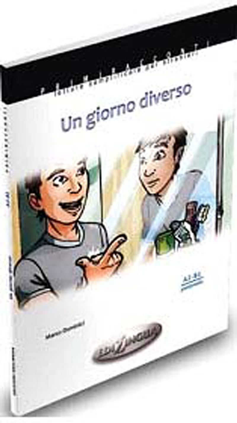 Un giorno diverso (A2-B1) racconta una giornata indimenticabile di un comune impiegato. Pietro, che un bel giorno decide di voler cambiare completamente vita. Nonostante cambiar vita non sia facile, Pietro, dopo alcuni anni di routine, decide di licenziarsi, decide di aprirsi alla vita e di godersi nuovamente la giornata, facendo colazione al bar, camminando per Roma, prendendo l’autobus, affrontando spiacevoli imprevisti, facendo spese. È proprio in un negozio di abbigliamento che conosce Cinzia..