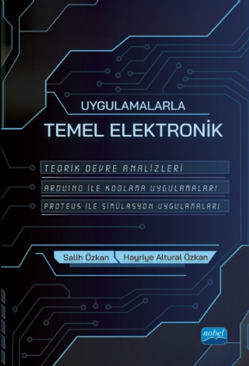 Günümüz teknolojisine yön veren ve hayatımızın vazgeçilmezi hâline gelen elektronik bilimi; sağlık sektöründe, endüstride, iletişim ve haberleşmede, otomasyon sistemlerinde ve daha pek çok alanda gelişim imkânı sunmakla birlikte insanların yaşam standartlarını artıran önemli bir bilim dalıdır. Bu bilim dalı, doğada yer alan maddelerin elektriksel özelliklerinden faydalanarak elektronik bileşenlerin oluşturulması ve bu bileşenler ile belirli bir amaca yönelik sistemlerin kurulmasını içerir. Doğada bulunan canlıları taklit ederek doğayı daha iyi tanıma imkânı sağlamakla birlikte insan yaşamını kolaylaştıran yeni buluşlara yön vermede oldukça etkili bir bilim dalıdır. Bu kitap, elektronik biliminin gizemli yolculuğuna ışık tutmakta ve elektroniğe ilgi duyanlar için temel kaynak oluşturmaktadır. Kitap, konu ve içerik bakımından basitten karmaşığa doğru sistematik bir şekilde hazırlanmış olup mühendislik düzeyinde güncel bilgi ve uygulamalar içermektedir. Ayrıca lisans öğrencilerin elektronik alanında proje tasarım süreçlerine katkı sunabilecek nitelikte olup elektroniğe ilgi duyan herkesin faydalanabileceği bir kitaptır. Kitapta; elektrik ve elektrik sinyalleri ile ilgili temel kavramlar, aktif ve pasif devre elemanları, yarı iletkenler, yükselteç devreleri, filtre devreleri, devre analizleri, elektrik motorları, lojik ifadelerin sadeleştirilmesi, lojik kapılar ve bu lojik kapıları kullanarak lojik devrelerin oluşturulması, elektronik ölçüm cihazlarının (multimetre ve osiloskop vb.) ve sinyal jeneratörünün kullanımı, baskı devre oluşturma, breadboard üzerine devre kurulumu, Arduino ile devre tasarımı ve kodlamaya yönelik uygulamalar, Proteus programı ile simülasyon uygulamaları, yaygın kullanılan sensörlere yönelik uygulamalar ve kablosuz haberleşme modüllerinin kullanımı konuları yer almaktadır.