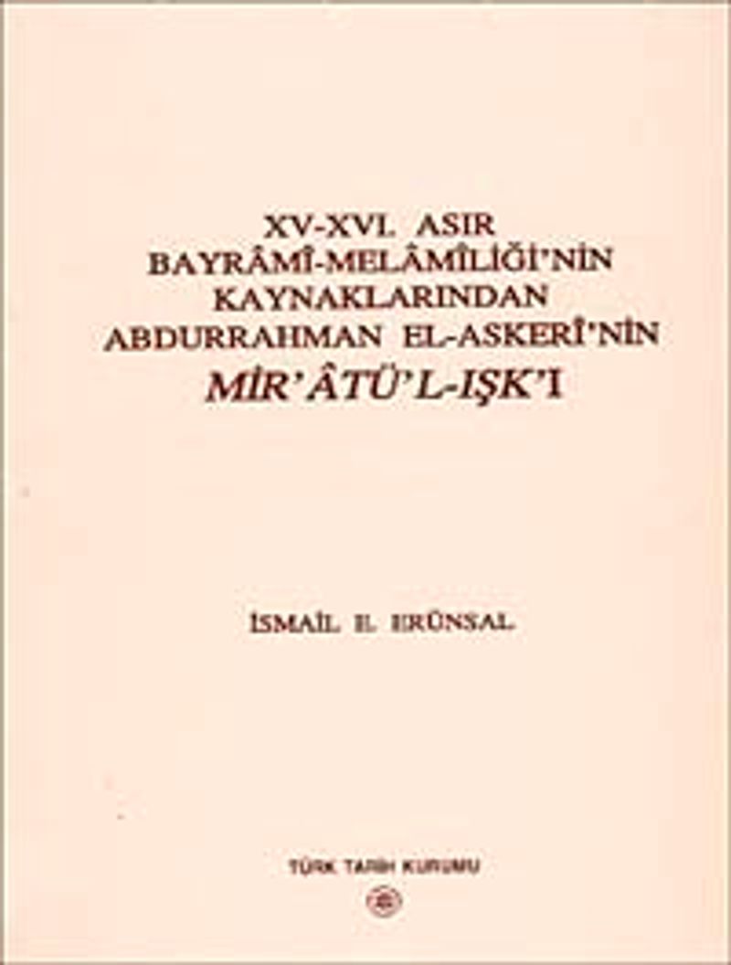 XV-XVI. Asır Bayrami-Melamiliği'nin Kaynaklarından Abdurrahman El-Askeri'nin Mir'atü-L-Işk'ı
