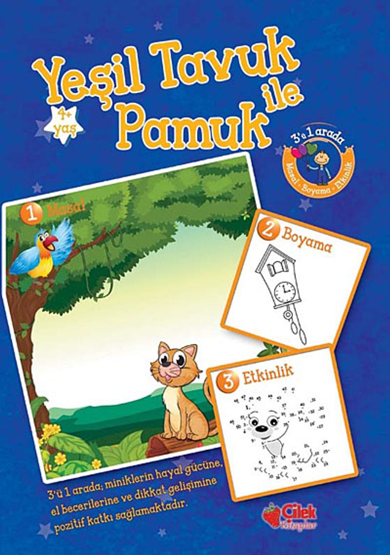 Değerli ebeveynler ve eğitimciler, çocuklarımızın hem eğlenecekleri hem öğrenecekleri yepyeni bir dizi karşınızda! Masal, Etkinlik, Boyama: Üçü Bir Arada! Dizinin bu kitabında yer alan Yeşil Tavuk ile Pamuk masalıyla çocuklar, hayal dünyalarını genişletecek, her sayfada yer alan boyamayla eğlenecek ve el becerilerini artıracak, kitap sonundaki etkinlikle de dikkatlerini geliştirecekler. Ayrıca öğrenecekleri yeni kavramlarla kelime hazinelerini genişletecekler. Etkinliklerini birlikte yapabileceğiniz bu kitaplar sayesinde çocuğunuzla vaktinizi dolu dolu geçireceksiniz.